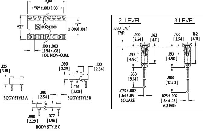 “X” (# PINS PER ROW -1) x 0.100 [2.54]