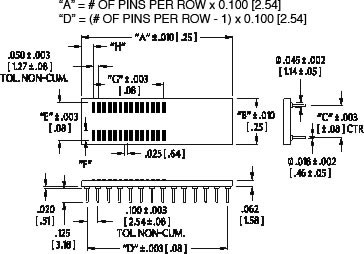 “D” = (NO. OF PINS PER ROW -1) x 0.100 [2.54]