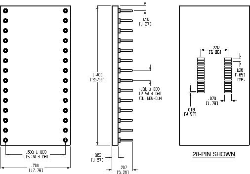 - PIN PLATING: 200µ [5.08µ] Sn/Pb 93/7 per ASTM B579-73 over 100µ [2.54µ] Ni per SAE AMS-QQ-N-290B